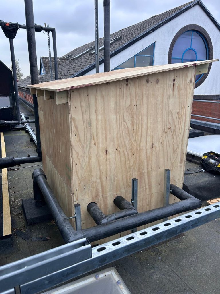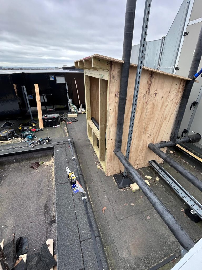 Rather than trying to adjust a structure that was already failing, we took a more practical approach and started again. In situations like this, patching tends to carry the same problems forward, just slightly hidden. The existing roof plant protection unit was fully removed, allowing us to rebuild it to the correct size and properly accommodate all equipment. The new structure was designed with maintenance access in mind from the outset, making it safer and more efficient for ongoing inspections and servicing. To complete the installation, a full felt system and waterproofing solution were applied, ensuring long-term protection against weather exposure and water ingress. Simple in principle, but done properly this time, which is usually where the difference is.